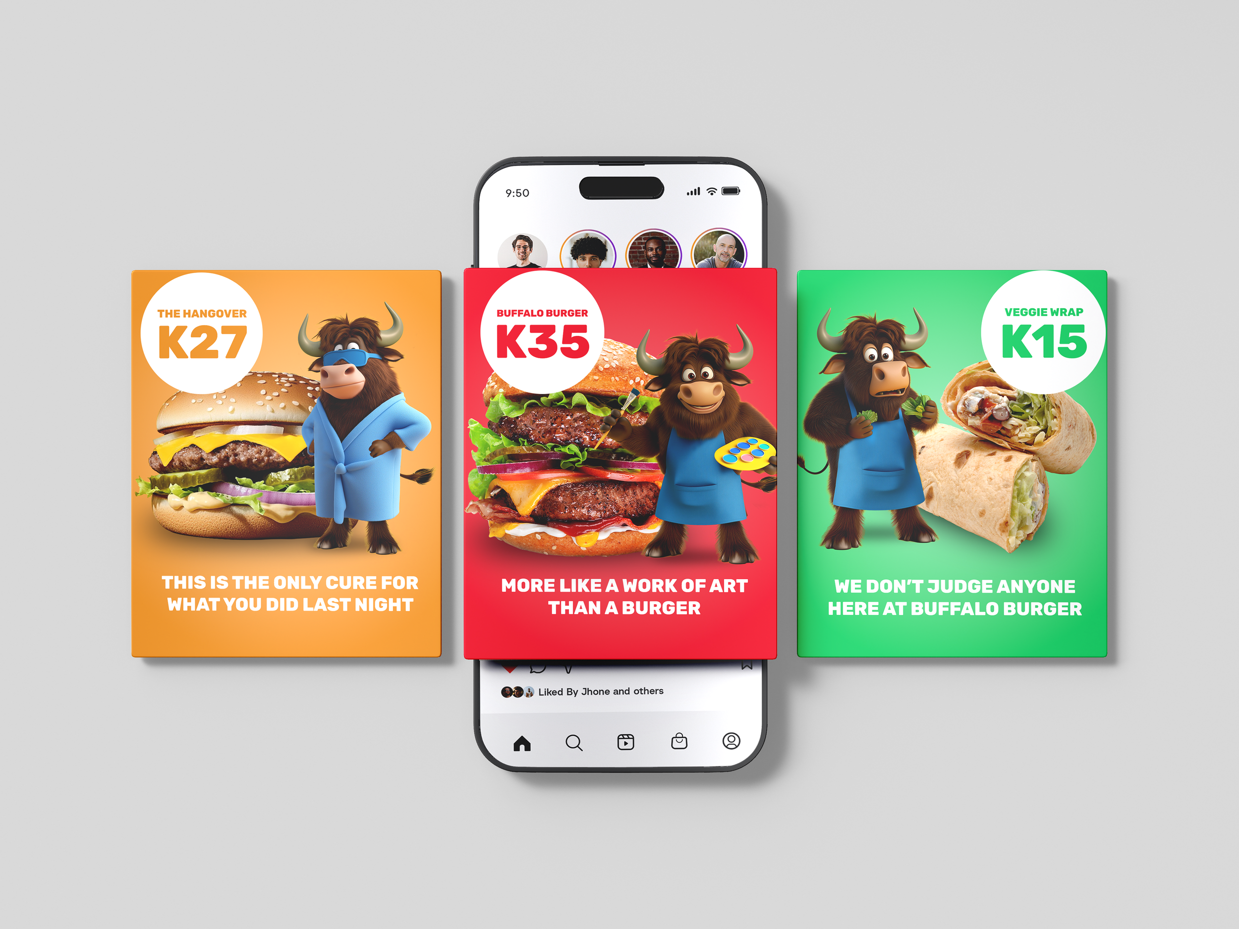 As the official “spokesbuffalo,” Buster transforms the menu into an experience, delivering content in a playful, high-impact way that captures attention and drives engagement. Designed with flexibility in mind, his character extends seamlessly across costumes, scenarios, and seasonal moments — often adding humour and personality to hero menu items.